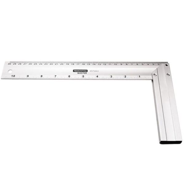Se você precisa conferir ângulos de 90º, traçar linhas perpendiculares e ter uma régua sempre a mão, você precisa de um esquadro da Tramontina. Uma ferramenta na medida, para a qualidade do seu trabalho.