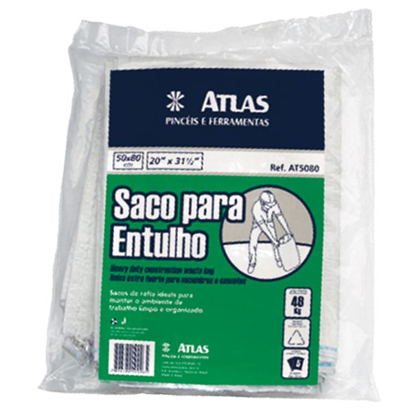 Saco de rafia com capacidade de 40kg de entulho.